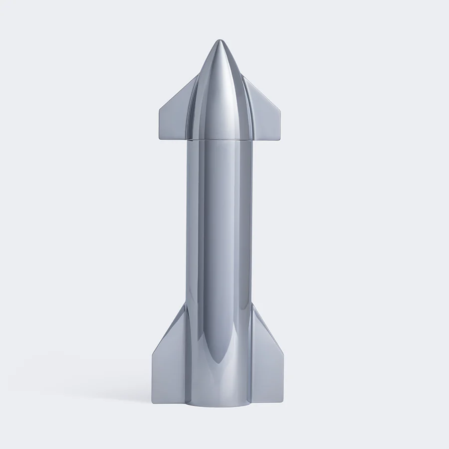When not in use, activate the safety lock and your torch transforms into a bad-ass 1:200 scale model of SpaceX’s Starship spacecraft fit for display.